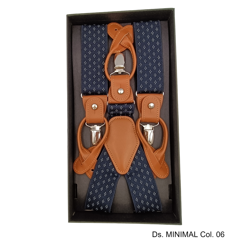 Button-Hosenträger Minimal Col. 6 navy, 3.5 cm breit mit 3 Clips und 3 Lederimitatschlaufen zum Knöpfen, Grösse 110 cm